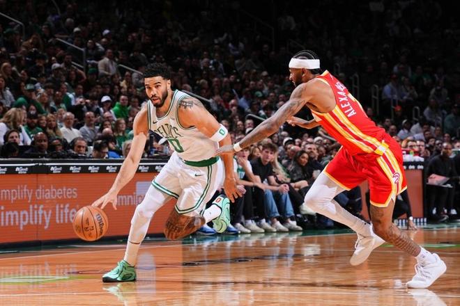 凯尔特人上一场主场119-109终结雷霆12连胜,老鹰过去3场连赢勇士、灰熊与活塞收获3连胜,本赛季前两次交锋双方各取一胜。本场凯尔特人缺少武切维奇与布朗,老鹰缺少兰代尔。首节开局双方7-7,老鹰一波9-0攻势取得领先,豪瑟中投追分,老鹰连中三分一波9-0攻势,凯尔特人已经9-25落后16分差距。凯尔特人回敬一波17-4攻势追分,首节结束凯尔特人26-29落后老鹰。首节老鹰21中8,其中三分11中5,杰伦6中4得到12分;凯尔特人22中11,其中三分9中3,塔图姆4中2得到5+2+1。